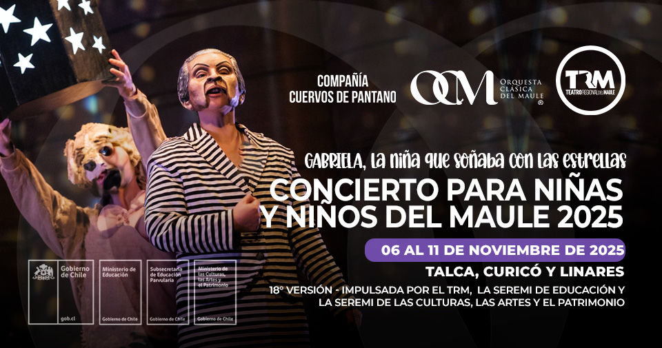 Este 2025 el icónico programa Conciertos para Niñas y Niños del Maule cumple 18 años. Esta iniciativa conjunta entre el Teatro Regional del Maule (TRM), Secretaría Regional Ministerial de Educación, Secretaría Regional Ministerial de las Culturas, las Artes y el Patrimonio, tiene como fin otorgar la posibilidad de acceso al arte a niños y niñas de la región a partir de una muestra musical integral, dirigida especialmente a sus intereses y a nivel de desarrollo.