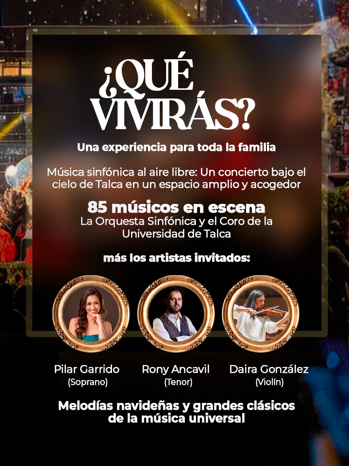 Este encuentro busca acercar la música sinfónica a la comunidad y ofrecer una experiencia artística abierta a todo público. El número central estará a cargo de la Orquesta Sinfónica y el Coro de la Universidad de Talca, dirigidos por el maestro Víctor Hugo Toro, quienes presentarán un programa especialmente preparado para esta ocasión.