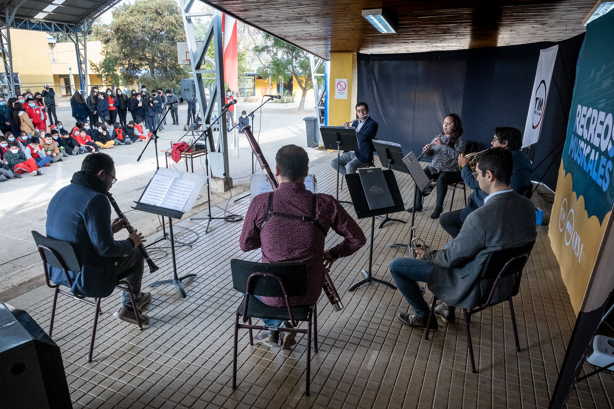 Un ensamble de vientos y un trío de percusión de la Orquesta Clásica del Maule serán los encargados de las ocho presentaciones, con obras adaptadas al formato y una propuesta que no se limita al concierto: los músicos interactúan con los estudiantes, explican los instrumentos y el trabajo colectivo de una orquesta, convirtiendo el recreo en una experiencia cultural participativa.
